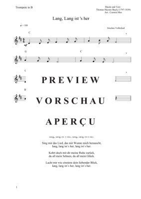 Lang, Lang ist ´s her - Noten für Trompete in B Solo + Akkorde Tradtional