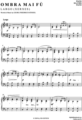 Largo - Ombra Mai Fu - Noten für Klavier Solo G. F. Händel (aus: Xerxes) / Fritz Wunderlich