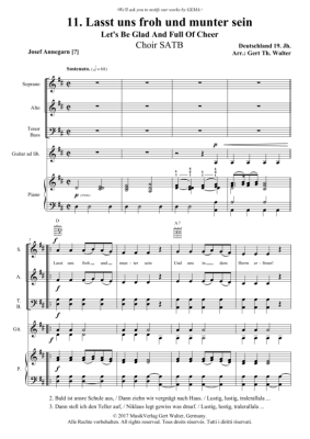 Lasst uns froh und munter sein - Noten für Gemischter Chor, Gitarre + Klavier Traditional