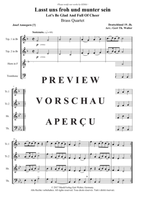Lasst uns froh und munter sein - Noten für Blechbläserquartett Traditional