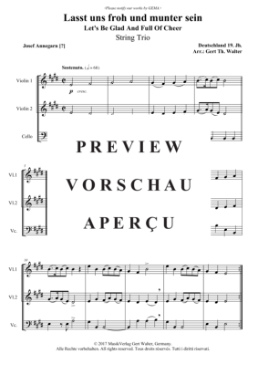 Lasst uns froh und munter sein - Noten für Streicher Trio Traditional