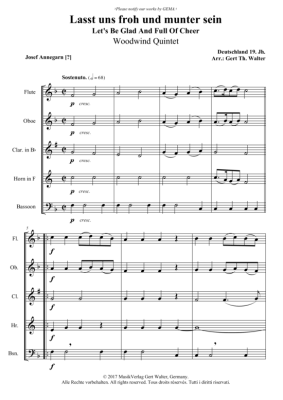 Lasst uns froh und munter sein - Noten für Holzbläserquintett Traditional