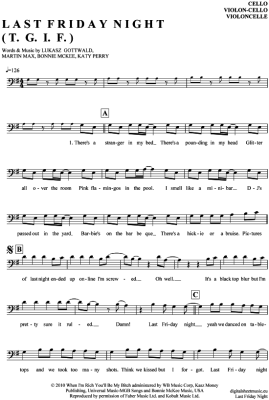 Last Friday Night - Noten für Violon-Cello Katy Perry