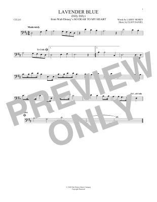Lavender Blue (Dilly Dilly) (from So Dear To My Heart) - Noten für Violoncello Burl Ives