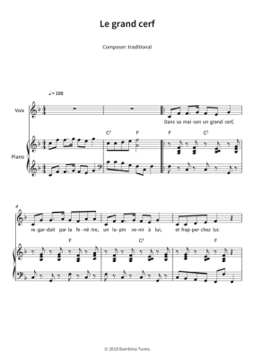 Dieses Werk enthält die Originalnoten des beliebten französischen Kinderlieds "Le grand cerf", einfach arrangiert in F-Dur für Klavier und Gesang.