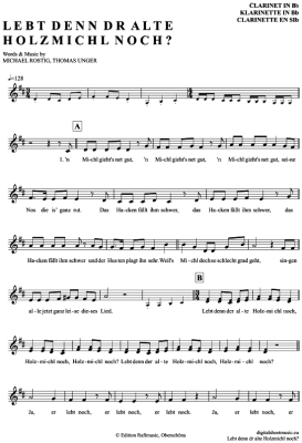Lebt denn der alte Holzmichl noch - Noten für Klarinette in B De Randfichten