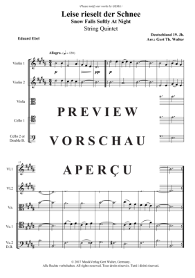 Leise rieselt der Schnee - Noten für Streicherquintett Traditional