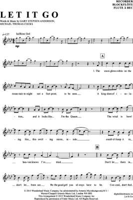 Let it go - Noten für Blockflöte Idina Menzel (aus: Frozen)