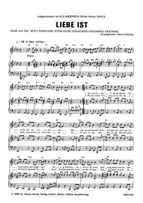 Liebe ist - Noten für Klavier und Gesang G.G. Anderson