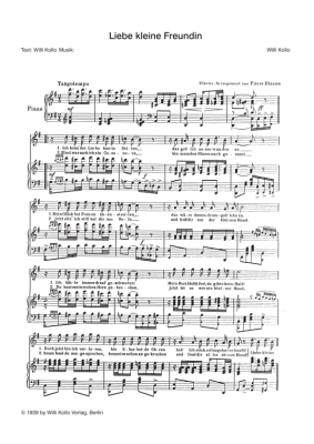 Liebe kleine Freundin - Noten für Klavier und Gesang Willi Kollo