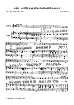 Lieber Schatz, das ganze Leben ist belämmert - Noten für Klavier und Gesang Willi Kollo
