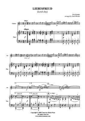 Liebesfreud - Noten für Klarinette in B + Klavier Fritz Kreisler