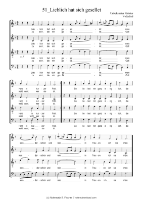Lieblich hat sich gesellet - Noten für Gemischter Chor Unbekannter Meister Volkslied