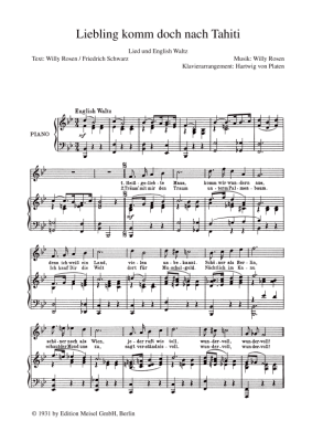 Liebling komm doch nach Tahiti - Noten für Klavier und Gesang