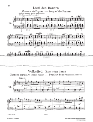Lied des Bauern - Noten für Klavier Pyotr Ilyich Tchaikovsky
