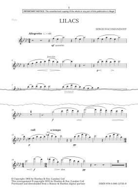 Lilacs - Noten für Flöte, Klavier Sergei Rachmaninoff