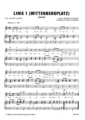 Linie 1 (Wittenbergplatz) - Noten für Klavier und Gesang Grips Theater (Linie 1 Musical)
