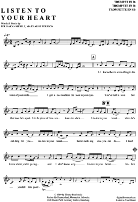 Listen to your heart - Noten für Trompete in B Roxette