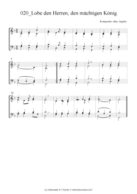 Lobe den Herren, den mächtigen König - Noten für Quartett in C unbekannter Verfasser