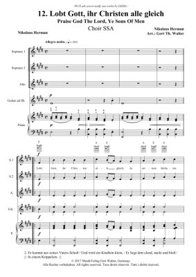 Lobt Gott, ihr Christen alle gleich - Noten für Frauenchor, Gitarre + Klavier Nikolaus Herman