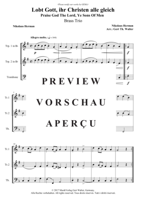 Lobt Gott, ihr Christen alle gleich - Noten für Blechbläser Trio Nikolaus Herman