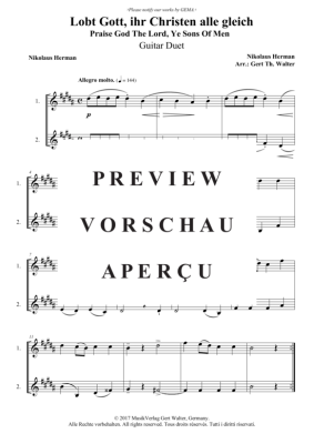 Lobt Gott, ihr Christen alle gleich - Noten für Gitarren Duett Nikolaus Herman