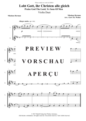 Lobt Gott, ihr Christen alle gleich - Noten für Violin Duett Nikolaus Herman