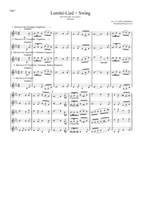 Lorelei-Lied + Swing - Noten fĂŒr BlechblĂ€ser Quintett - Flexible Besetzung + Schlagzeug Traditional