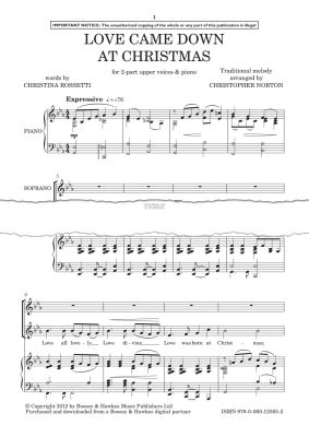 Love Came Down At Christmas - Noten für Gesang, Klavier Traditional
