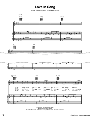 Love In Song - Noten für Gesang, Gitarre, Klavier Paul McCartney & Wings