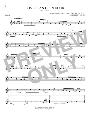 Love Is An Open Door (from Frozen) - Noten für Horn Kristen Bell & Santino Fontana