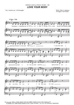 Love your body - Noten für Klavier und Gesang 1983