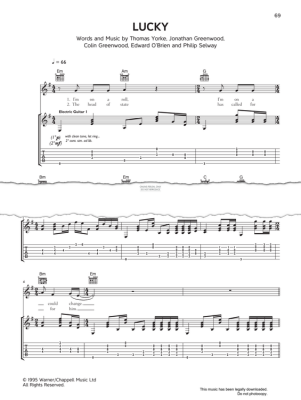 Lucky - Noten für Gesang, Gitarre Radiohead
