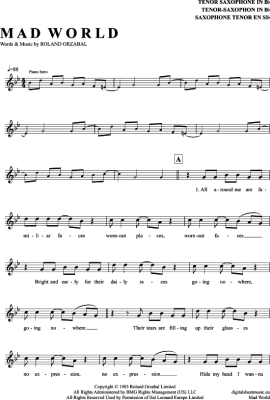 Mad World - Noten für Tenorsaxophon Michael Andrews/Gary Jules