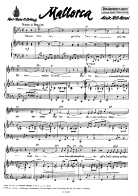 Mallorca - Noten für Klavier und Gesang Beguine