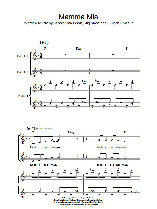 Mamma Mia (arr. Rick Hein) (2-stimmiger Chor)
