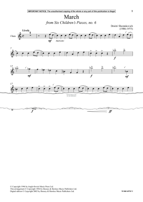 March from 'Six Children’s Pieces, No. 6' - Noten für Flöte Dmitri Shostakovich