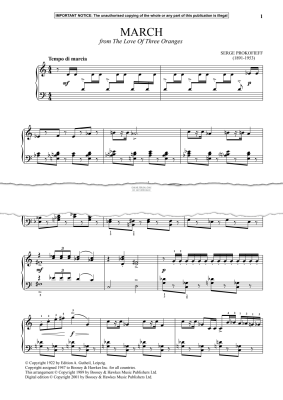 March from The Love Of Three Oranges - Noten für Klavier Serge Prokofieff