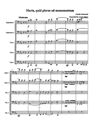 Maria, Quid Ploras ad Monumentum - Noten für Tuba Quintett EETTT Claudio Monteverdi