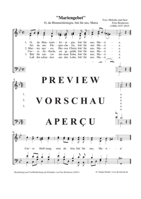 Mariengebet (O, du Himmelskönigin, bitt für uns, Maria) - Noten für Gemischter Chor Fritz Brodersen 1937-2015