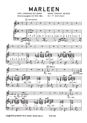 Marleen - Noten für Klavier und Gesang Marianne Rosenberg