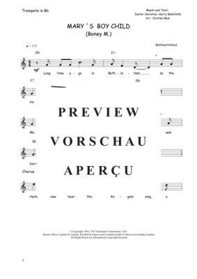 Mary´s Boy Child (C - Dur) - Noten für Trompete in B Solo + Akkorde Harry Belafonte
