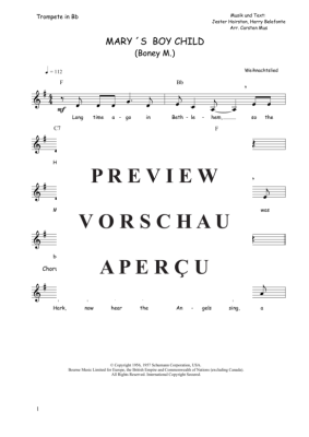 Mary´s Boy Child ist ein sehr beliebtes Lied für Weihnachten, dessen Autor ein amerikanischer Musiker und Schauspieler Jester Hairston ist. Im Jahr 1957 wurde das Lied zum ersten Mal auf dem Album veröffentlicht, und Harry Belafonte sang es. Für den fortgeschrittenen Trompeter als Vortrags oder Übungsstück bestens geeignet. Dazu Akkordsymbole für ein Begleitinstrument in C und eine Liedstrophe zum Mitsingen. (G-Dur)