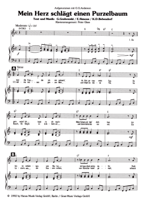Mein Herz schlägt einen Purzelbaum - Noten für Klavier und Gesang G.G. Anderson