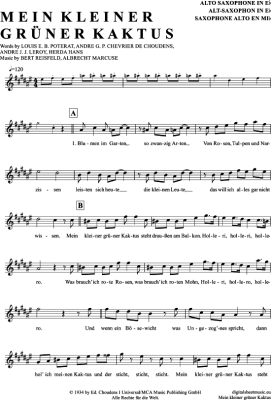 Mein Kleiner Grüner Kaktus - Noten für Altsaxophon Comedian Harmonists