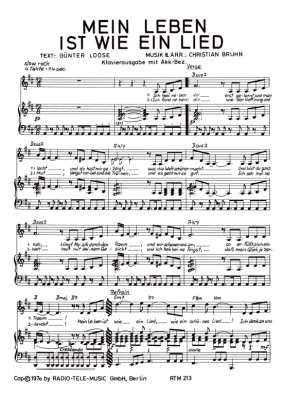Mein Leben ist wie ein Lied - Noten für Klavier und Gesang Katja Ebstein