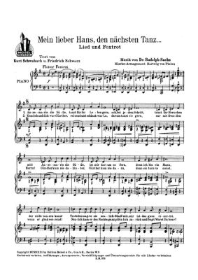 Mein lieber Hans, den nächsten Tanz - Noten für Klavier und Gesang Lied und Foxtrott