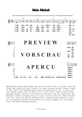 Mein Michel, was willst du noch mehr? - Noten für Gitarre + Gesang antimilitaristisches Lied