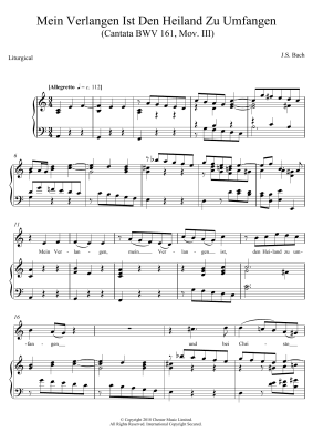 Mein Verlangen Ist Den Heiland Zu Umfangen (Cantata BWV 161, Mov. III) - Noten für Gesang, Gitarre, Klavier Johann Sebastian Bach