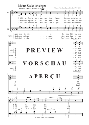 Meine Seele lobsinget - Noten für Gemischter Chor Johann Abraham Peter Schulz